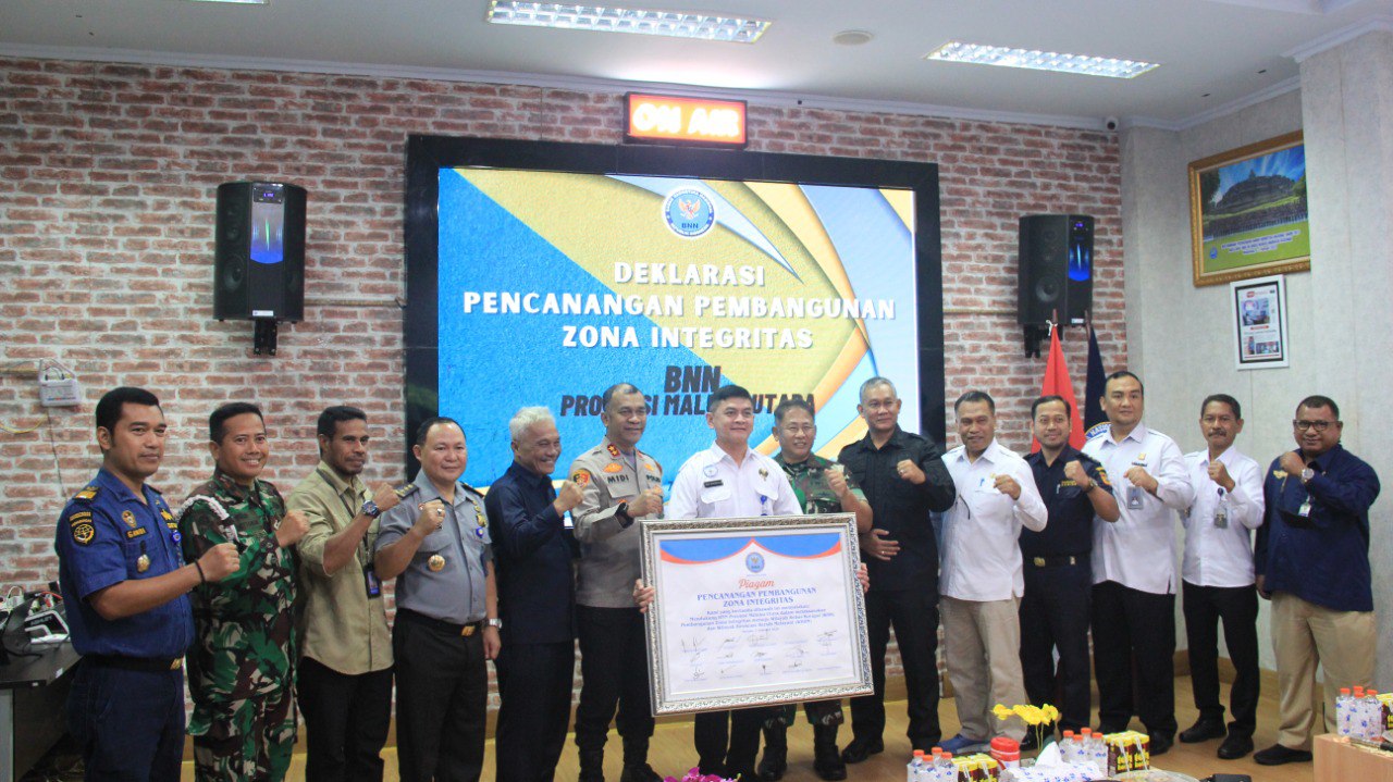 TERNATE- Upaya mewujudkan Zona Integritas Menuju Wilayah Bebas Korupsi (WBK) dan Wilayah Birokrasi Bersih Melayani (WBBM) BNN Provinsi Maluku Utara meluncurkan layanan Surat Keterangan Hasil Pemeriksaan Narkotika (SKHPN) modern deklarasi pencanangan pembangunan Zona Integritas BNN Provinsi Maluku Utara dengan slogan Cetar yang berarti Cepat Tepat dan Akurat.