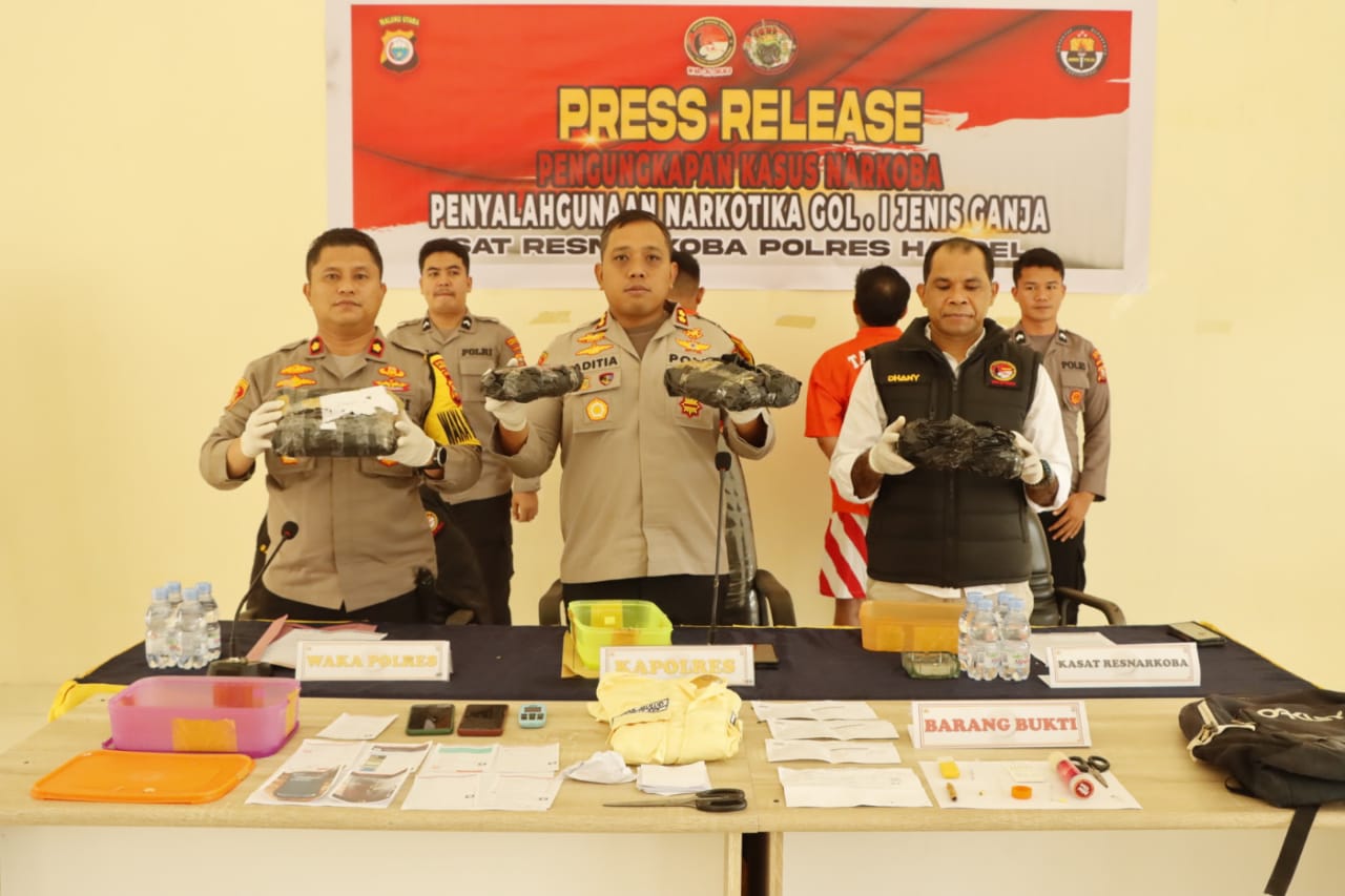 LABUHA, MPe — Polres Halmahera Selatan berhasil mengamankan Narkotika golongan I jenis ganja sebanyak 2,01 Kg bersama dengan dua pelaku yang diduga sebagai pengedar narkoba.