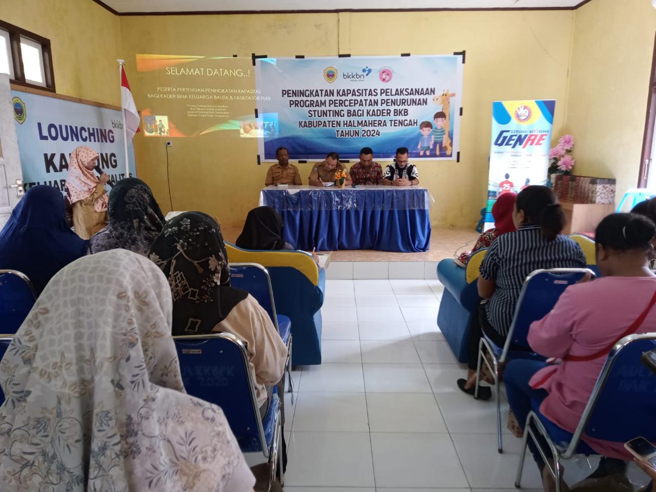 WEDA – Demi meningkatkan kapasitas Sumber Daya Manusia (SDM) khususnya bagi kader Bina Keluarga Balita (BKB) dalam menyebarluaskan dan mengedukasi informasi tentang stunting di tengah masyarakat Perwakilan BKKBN Provinsi Maluku Utara menggelar kegiatan Peningkatan Kapasitas Pelaksanaan Percepatan Penurunan Stunting (PPS) Bagi Kader BKB di Kabupaten Halmahera Tengah pada Selasa, (19/04/2024).