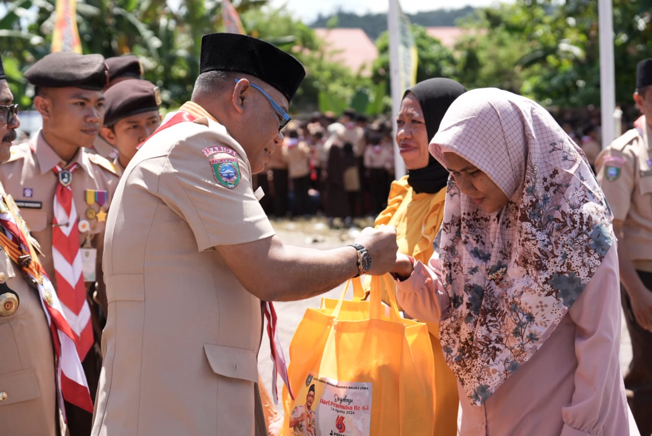 SOFIFI- Penjabat (Pj.) Gubernur Maluku Utara, Drs. H. Samsuddin Abdul Kadir, M.Si, yang juga Ketua Mabida Pramuka Maluku Utara menyatakan tema peringatan Hari Pramuka ke-63 Tahun 2024 ini adalah “Pramuka Berjiwa Pancasila Menjaga NKRI”, mengandung dua instrumen yang pengaruhnya sangat kuat bagi kehidupan bermasyarakat, yaitu Pramuka dan Pancasila.