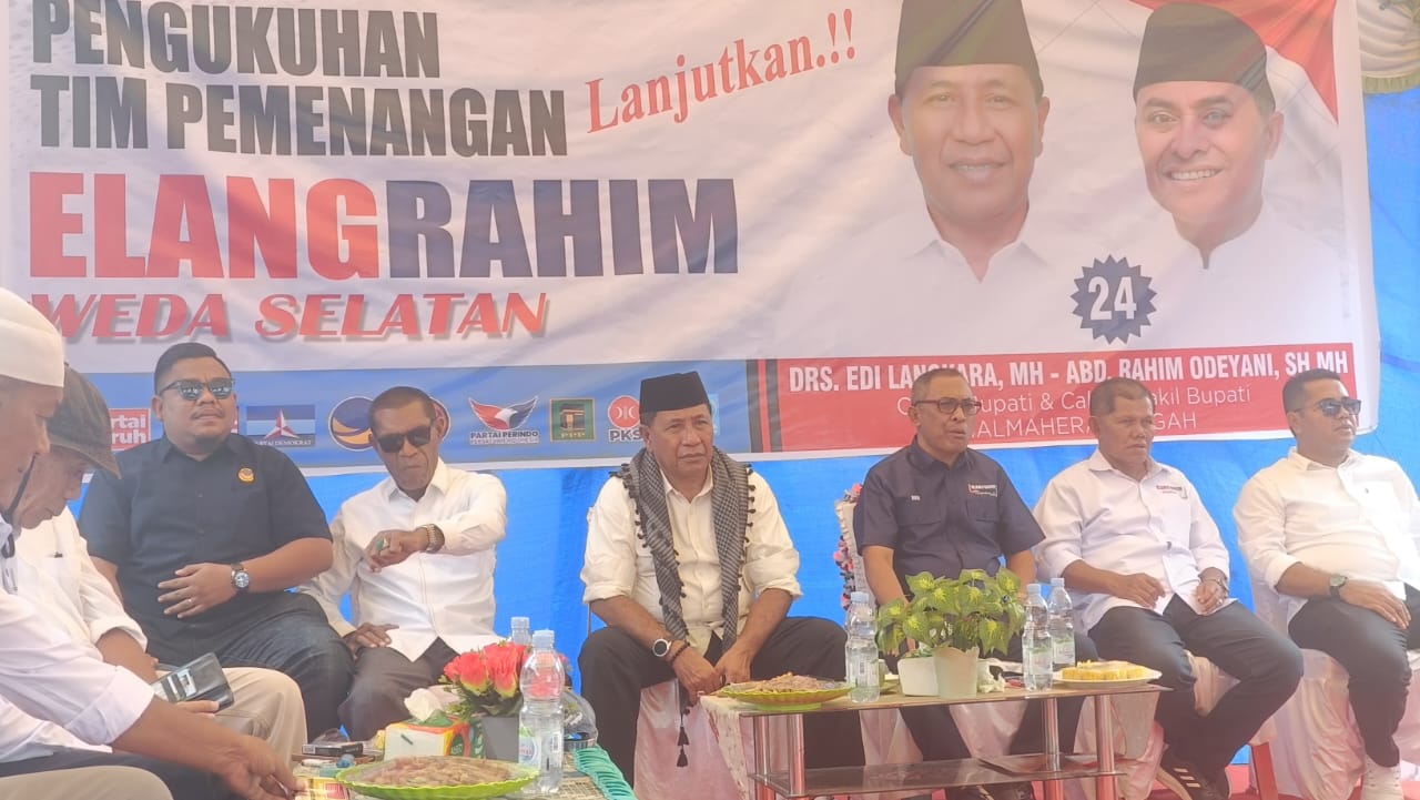 Sedangkan Ketua Tim Pemenangan Elang-Rahim Kecamatan Weda Selatan, Muhlis Jajaran, dalam sambutan mengatakan, Elang-Rahim sudah banyak membutikan Pembangunan di Weda Selatan, seperti infrastruktur jalan hotmix, akses telekomunikasi di Weda Selatan.