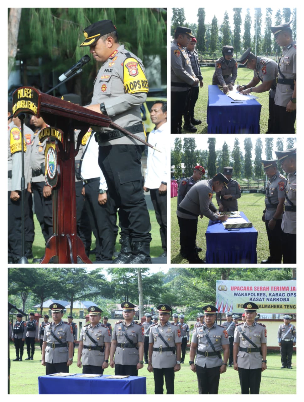 WEDA,MPe – Kapolres Halteng AKBP Aditya Kurniawan,SH,S.Ik pimpin Upacara Serah Terima Jabatan Pejabat Wakapolres,Kabag Ops dan Kasat Resnarkoba Polres Halteng. Upacara Sertijab dilaksanakan di lapangan Mako polres Halteng pada Kamis (3/10/2024).