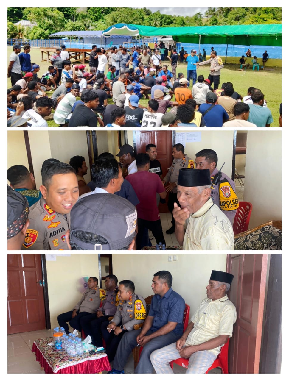 Kapolres Halteng Halteng AKBP Aditya Kurniawan, S.H., S.I.K. saat ini sudah berada di kec. Patani Utara dan melakukan pertemuan dengan para tokoh serta ketua tim pemenangan 3 paslon dengan didampingi oleh Camat Patani Utara, Kades Tepeleu Batu Dua.