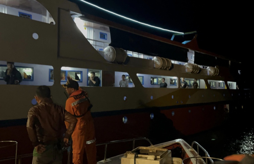 LABUHA- Kapal Motor KM. Aksar Saputra 07 mengalami kerusakan pada kemudi saat berlayar dengan membawa ratusan penumpang dari Pelabuhan Kupal Bacan, Halsel menuju Pelabuhan Bastiong Kota Ternate pada Sabtu 07/12/24.