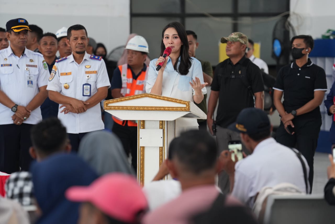 TERNATE- Gubernur Maluku Utara Sherly Laos melepas secara resmi Mudik Bersubsidi tujuan keberangkatan ke Kepulauan Sula, Sanana pada Ahad sore (23/03/25) yang berlangsung di pelabuhan Ahmad Yani, Kota Ternate.