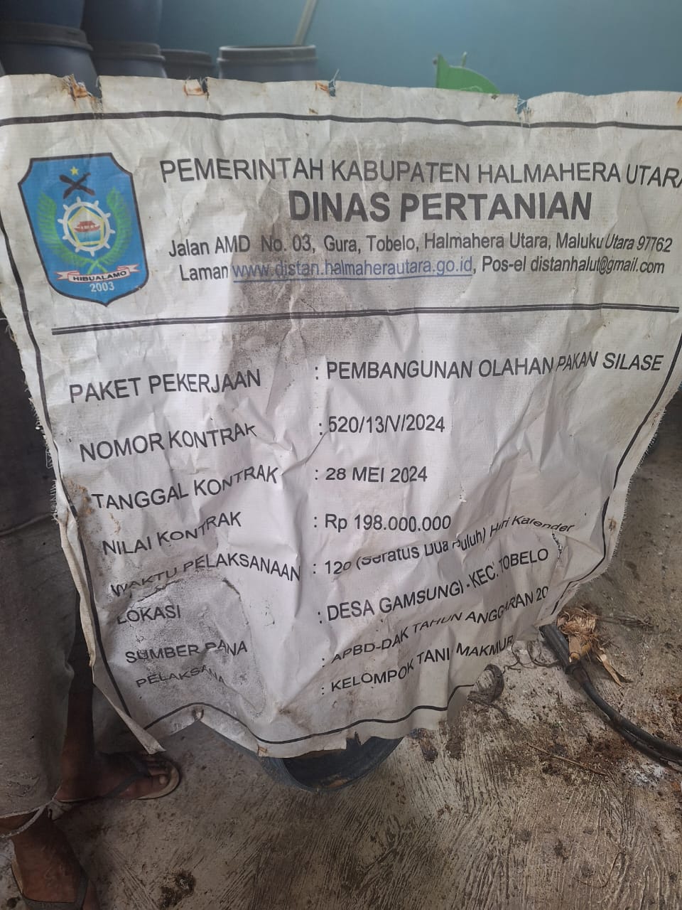 “Anggaran proyek ini Rp198 juta, untuk pembangunan rumah olahan pakan silase dan pembelian alat pencacah rumput (coper). Namun, alat pencacah hanya bisa dipakai dua kali lalu rusak. Bangunannya juga sangat kecil,” ujarnya kepada awak media.