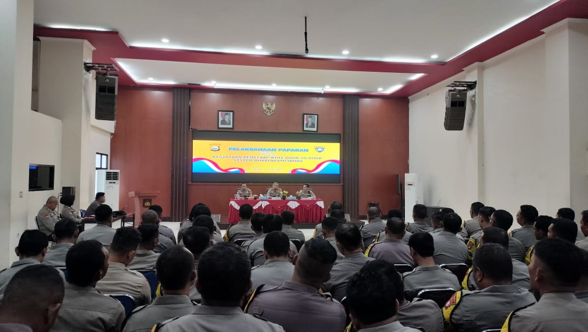 Kegiatan kemudian dilanjutkan dengan pemaparan pemetaan route door to door system oleh Bhabinkamtibmas guna memaksimalkan pendekatan preventif dalam penanganan gangguan kamtibmas.