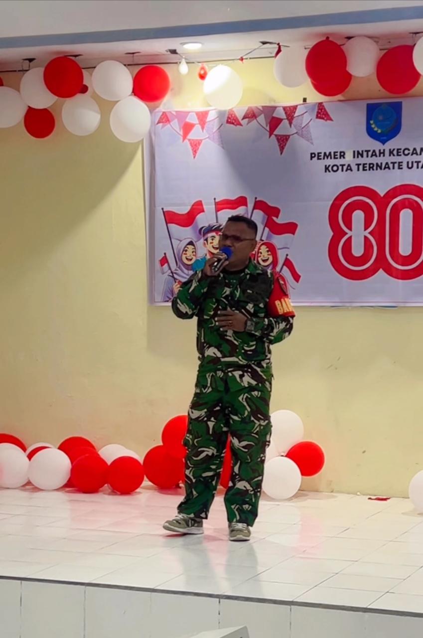 TERNATE- Bintara Pembina Desa (Babinsa) Kelurahan Salero, Serda Idham tunjukkan kualitasnya melalui olah vocal dengan meraih juara dalam vokal solo melalui lomba karaoke yang dihelat Pemerintah Kota Ternate Utara di momentum HUT Proklamasi ke-80.