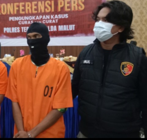 Sosok RA (kiri) pelaku pencurian disertai kekerasan di toko Al-Nizam, Kelurahan Gamalama, Ternate, pada Jumat 25 Juli (2025) lalu berhasil diringkus petugas.