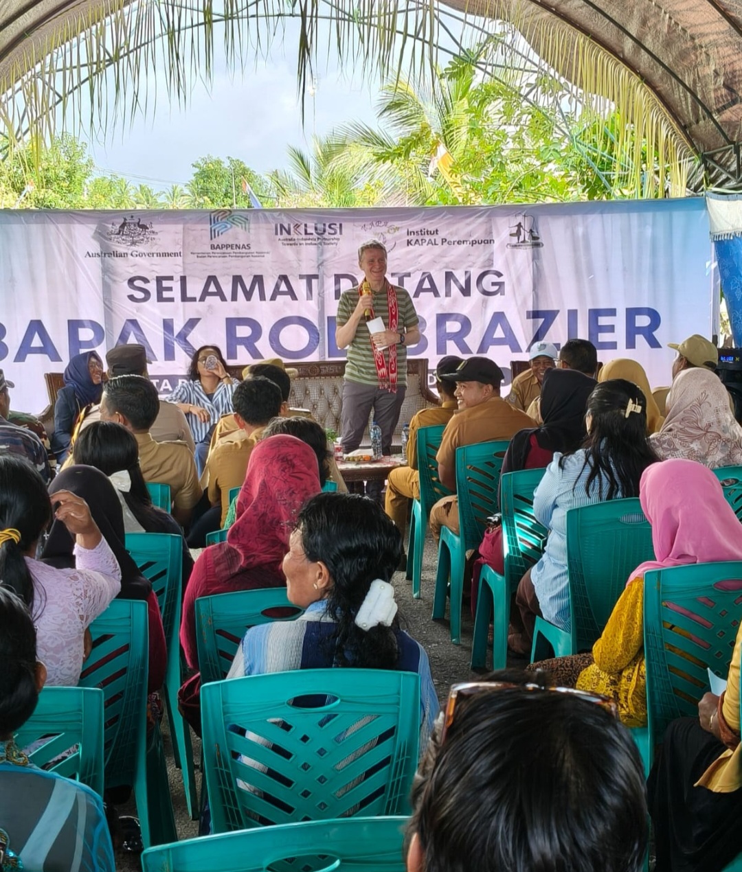Pulau Morotai— Duta Besar Australia untuk Indonesia, Rod Brazier, hari ini mengunjungi Desa Tiley Pantai di Kabupaten Pulau Morotai, Maluku Utara, untuk berdialog dengan anggota Sekolah Perempuan dan pengelola Pos Pengaduan dari 9 (sembilan) desa, yaitu Desa Tiley Pantai, Waringin, Galo-Galo, Usbar Pantai, Tiley Pusu, Tutuhu, Kolorai, Pilowo dan Raja.