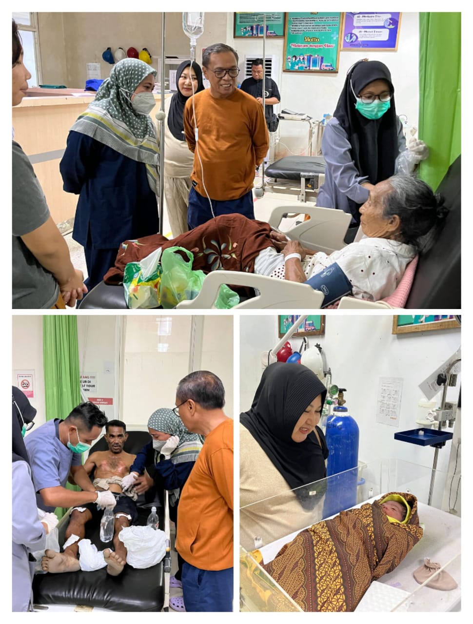 Dalam kesempatan tersebut, Bupati dan Ibu menyapa langsung para pasien, memberikan semangat, serta mendoakan agar mereka segera diberikan kesembuhan. Beberapa pasien yang dirawat antara lain korban luka bakar, pasien lansia, hingga seorang bayi yang baru saja lahir.