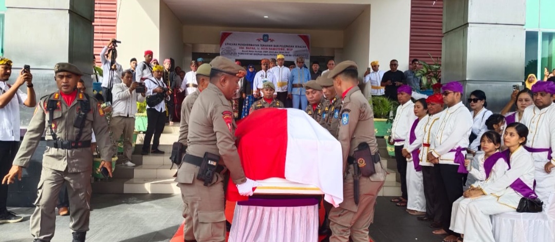 Tobelo, Jenazah mantan Bupati Halmahera Utara (Halut), Ir. Hein Namotemo diantar tangis haru Ribuan warga dari Kantor Bupati menuju tempat peristirahatan terakhir yang terletak di Vak 1 Rumah duka dengan serangkaian prosesi pelepasan disejumlah titik pada acara penghormatan sang “Tokoh Pembangunan Hibualamo”. Senin (08/12/2025).