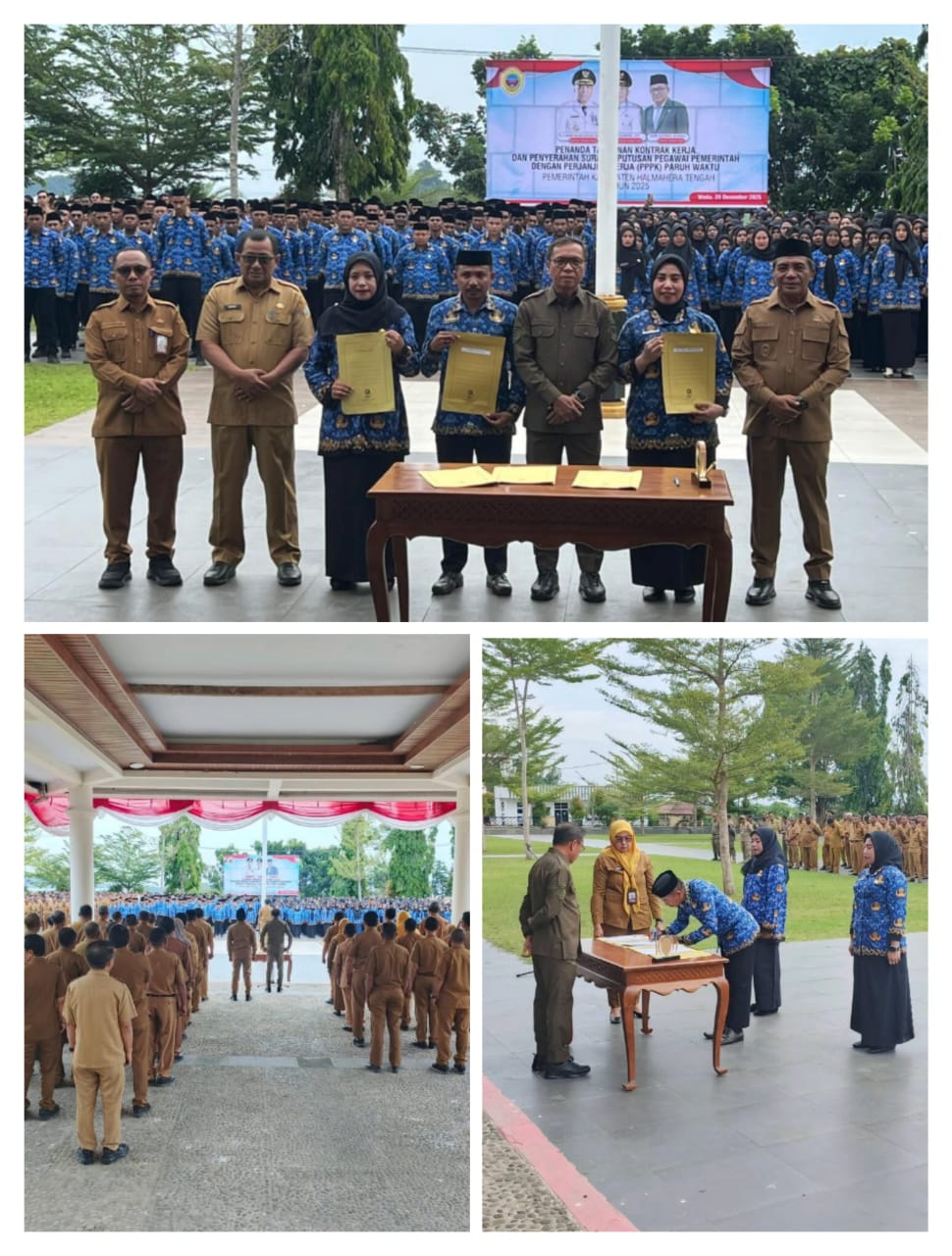 Usai laporan Kepala BKPSDM, kegiatan dilanjutkan dengan penandatanganan kontrak kerja PPPK Paruh Waktu oleh Bupati Halmahera Tengah, didampingi Wakil Bupati dan Sekretaris Daerah. Selanjutnya dilakukan penyerahan SK PPPK Paruh Waktu secara simbolis kepada perwakilan pegawai sebagai tanda dimulainya masa pengabdian di lingkungan Pemerintah Kabupaten Halmahera Tengah.