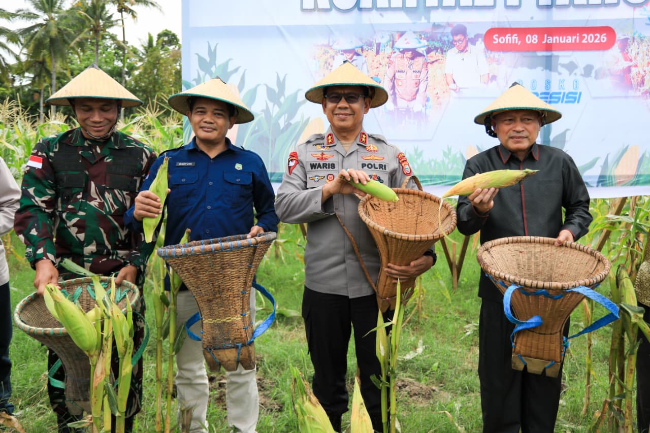 SOFIFI — Kepala Kepolisian Daerah (Kapolda) Maluku Utara Irjen Pol. Drs. Waris Agono, M.Si. menghadiri pelaksanaan Panen Raya Jagung Serentak Kuartal I.